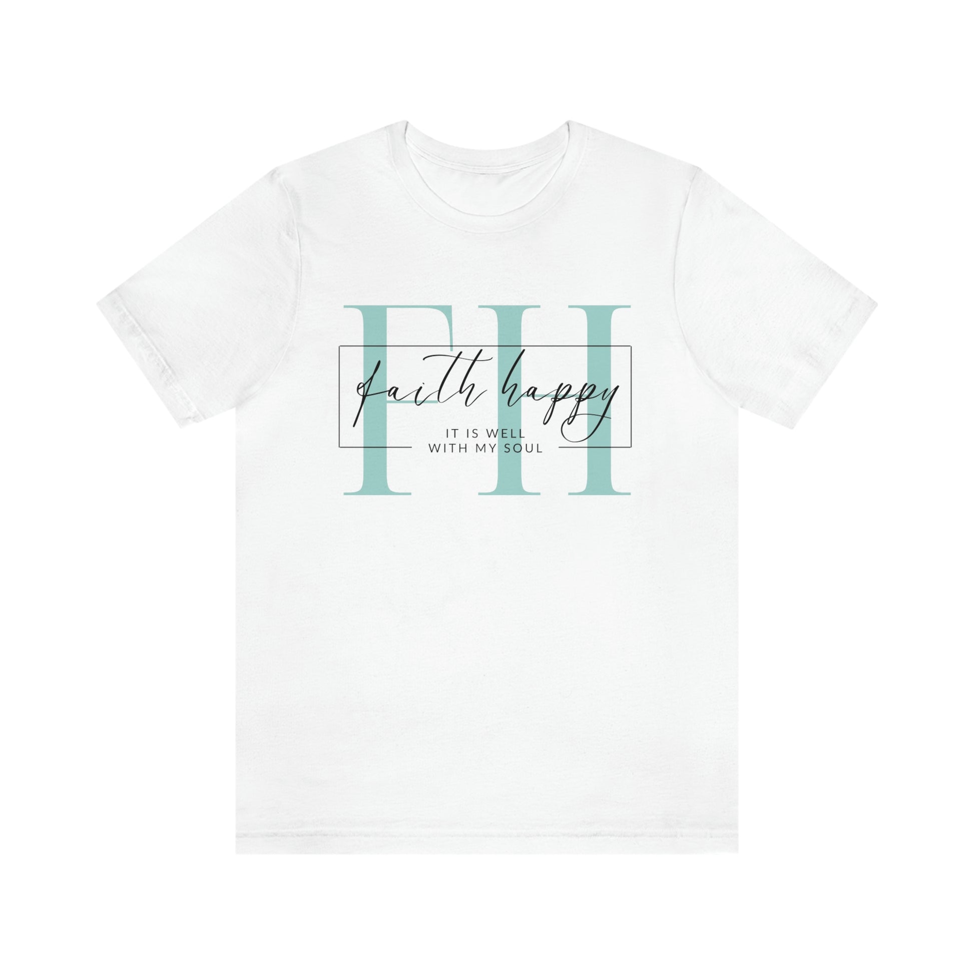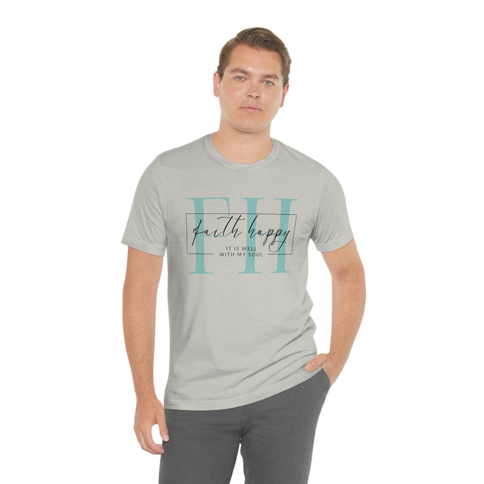 This classic unisex jersey short sleeve tee fits like a well-loved favorite. Featuring Faith Happy logo and the saying "it is well with my sould, its soft cotton and quality print make users fall in love with it over and over again. These t-shirts have-ribbed knit collars to bolster shaping. The shoulders have taping for better fit over time. Dual side seams hold the garment's shape for longer.