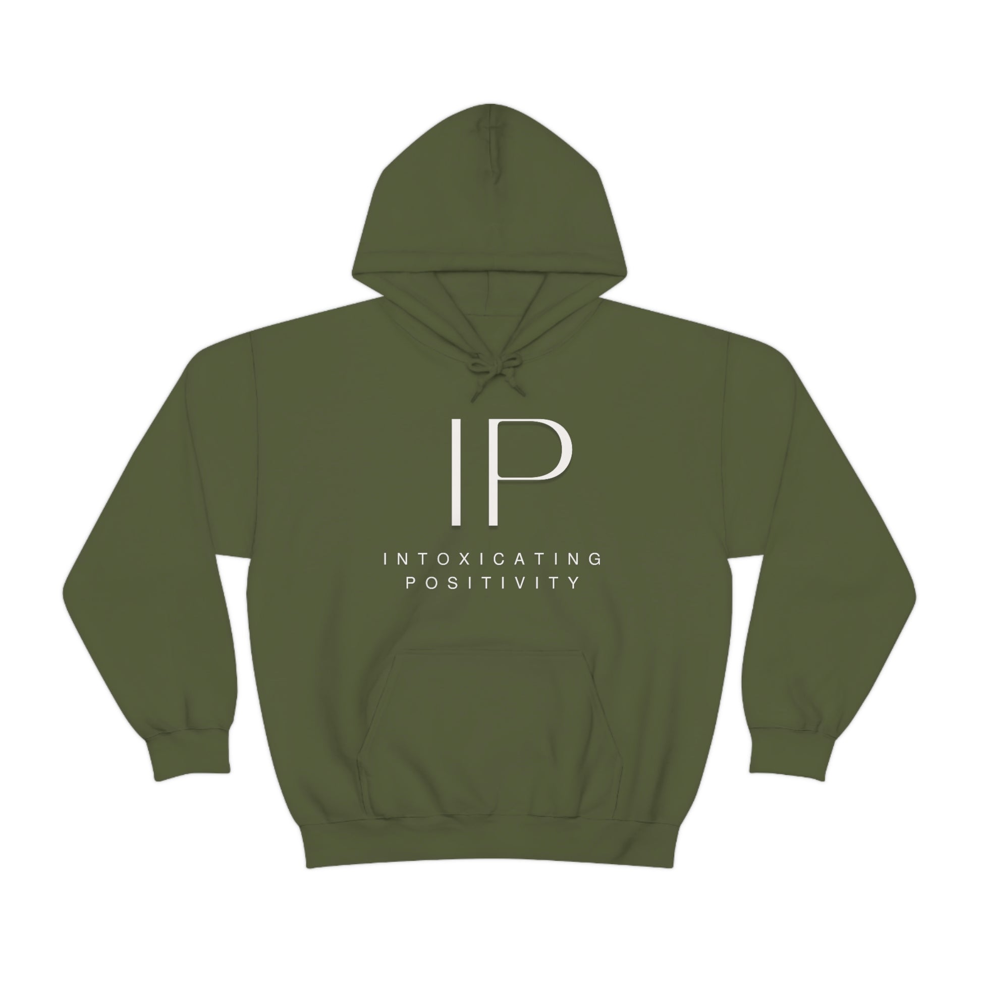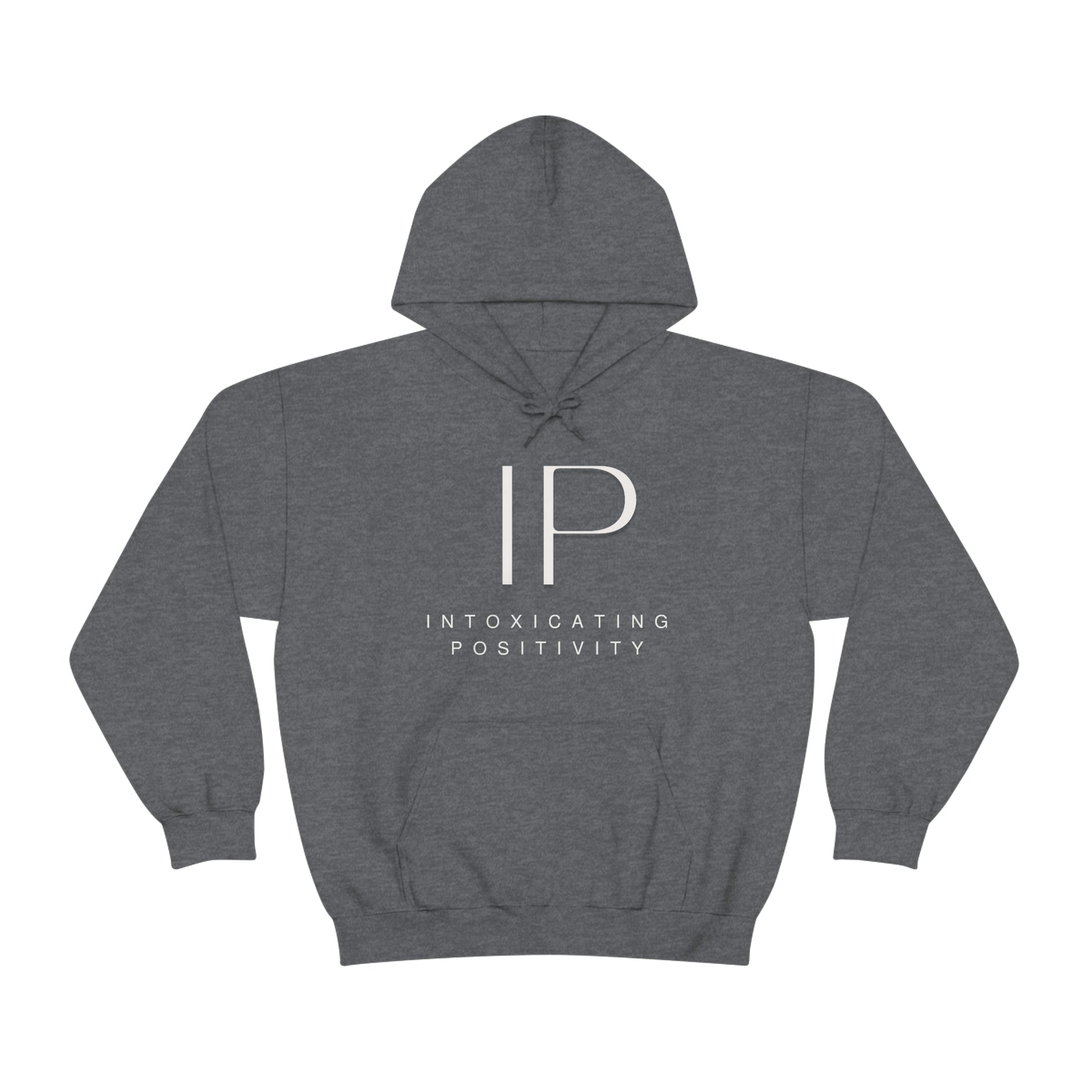 This heavy blend hooded sweatshirt is relaxation itself. It features Cleddie Keith's famous expression "intoxicating positivity". Made with a thick blend of cotton and polyester, it feels plush, soft and warm, a perfect choice for any cold day. In the front, the spacious kangaroo pocket adds daily practicality while the hood's drawstring is the same color as the base sweater for extra style points.