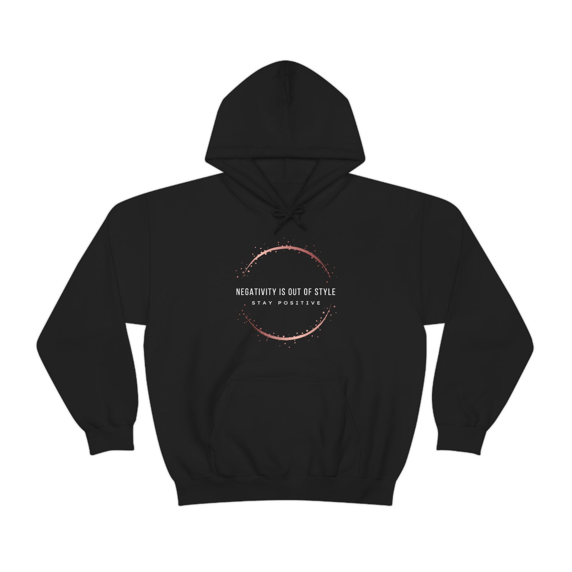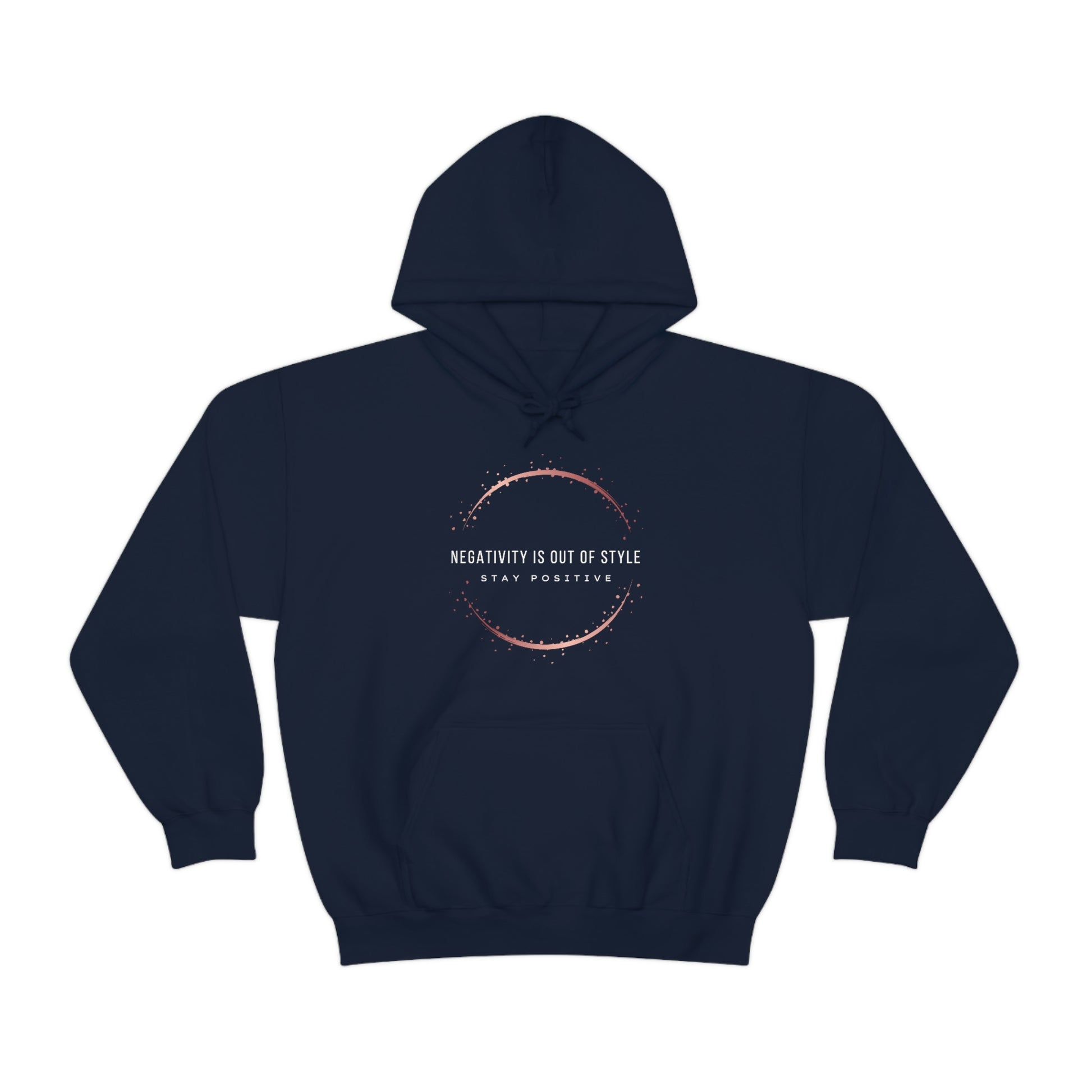 This unisex heavy blend hooded sweatshirt is relaxation itself. It features Faith Happy's original saying "Negativity Is Out Of Style Stay Positive" and is made with a thick blend of cotton and polyester, it feels plush, soft and warm, a perfect choice for any cold day. In the front, the spacious kangaroo pocket adds daily practicality while the hood's drawstring is the same color as the base sweater for extra style points.